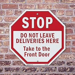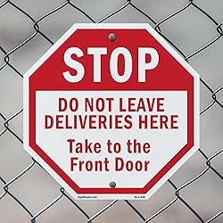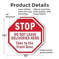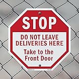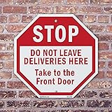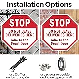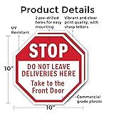 Stop Do Not Leave Deliveries Here Take to The Front Door (2 Pack) 10 inch X 10 inch Octagon Plastic Sign Weather Resistant, UV Protected for Workplace, Made in the USA