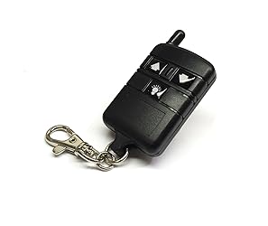 Three Button Transmitter Frequency: 340 MHz Keychain lanyard included Blue LED indicates transmission Dimensions: approximately 3″L x 1.5″W x 0.5″D