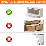 The drop down hinge is designed for heavy drop-down lids. The gas struts allow the flap to descend gently and hold positions at 75°, 90°, or 105°. This drop-down hinge ensures that the falp lid lowers slowly, providing sturdy support for the weight when it opens and protecting the cabinet structure from damage caused by slamming or abrupt door closures. The hinge is crafted from solid brass and iron. Each gas spring hinge delivers 100 Newtons (approximately 22LBS) of force, making it ideal for supporting and controlling the movement of drop-down door, such as those found on drop-leaf desk, drop-front desk, secretary desk, cabinet doors, loft hatches, or any DIY projects. Overall length: 8.5in (compressed) to 12in (stretched). The space-saving hinge will extend automatically as you pull the lid open, and will not get in the way. The mounts feature slots for fine-tuning piston placement, ensuring the best fit before you lock them in place. With the provided template and step-by-step guide, you can easily find the right screw holes and get the installation done without any fuss. Even if you're not very handy, the process will be straightforward and easy. Attention: 1, our gas struts are suitable only for cabinets with an inside height greater than 10", a flat surface; 2, lids no larger than 48" in length and 24" in width; 3, do not install it with uneven lids or cabinet panels.