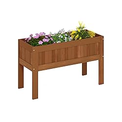 Furinno TIOMAN Planter Box, Outdoor Elevated Standing Planter Box, Raised Garden Bed with Legs, Outdoor, Indoor, Garden, Patio, Balcony, Natural
