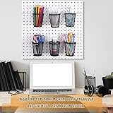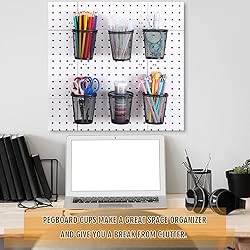 Generous Package: the set comes with 6 pen holders and 6 pegboard hooks, ideal for managing several office supplies effortlessly, meeting your storage needs at once; About 3.15 x 5.24 x 4.33 inches, you can place your office supplies such as pen, scissors, or makeup brushes Effortless Installation: with easy to install pegboard hooks, which are suitable for hole diameter of 1/8 inch, 3/16 inch and 1/4 inch, mounting these pencil holders is easy; The simple setup saves you time, allowing you to get back to work promptly Sturdy and Robust Design: crafted from metal with ABS coating, the pegboard pen holder ensures longevity and durability; Their resilient build helps to resist breakage, ensuring you won't need replacements quickly Versatile and Convenient: the peg board pen holder offers a versatile way for managing a variety of office products; From pens and markers to small tools and accessories, they help efficiently declutter your workspace; Their compact design also helps in space utilization, thus enhancing productivity Widely Applicable: the pencil cups for pegboard with rings allows you to store accessories, not only pens, pencils, rulers, erasers, paper clips, scissors and others, but also cosmetic brushes, lipstick and keys; It is suitable for families and offices applied by students, teachers and office workers to create an orderly and tidy office environment