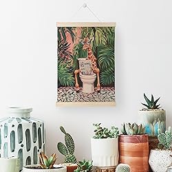 Nrleey Funny Bathroom Poster Hanger Frame - Giraffe Tropical Wall Art with Wooden Poster Hanger, Giraffe Art Decor, Funny Animal Bathroom Wall Art Decor, 12x16 Inches