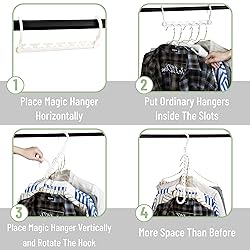 - Mr. Pen space‐saving hangers set includes 20 durable plastic hangers engineered to help you make the most of every inch in your closet.Each hanger features 6 integrated slots, allowing you to neatly organize multiple garments—such as scarves, belts, camisoles, or ties—on a single hanger.The 360° rotating hooks provide effortless access to your clothing, so you can rotate and retrieve items without disturbing neighboring pieces.A sleek matte-white finish offers a modern look that complements any wardrobe décor while resisting scratches and wear.By consolidating up to 6 items per hanger, these multi-clothes hangers instantly declutter your closet and streamline your daily dressing routine.
