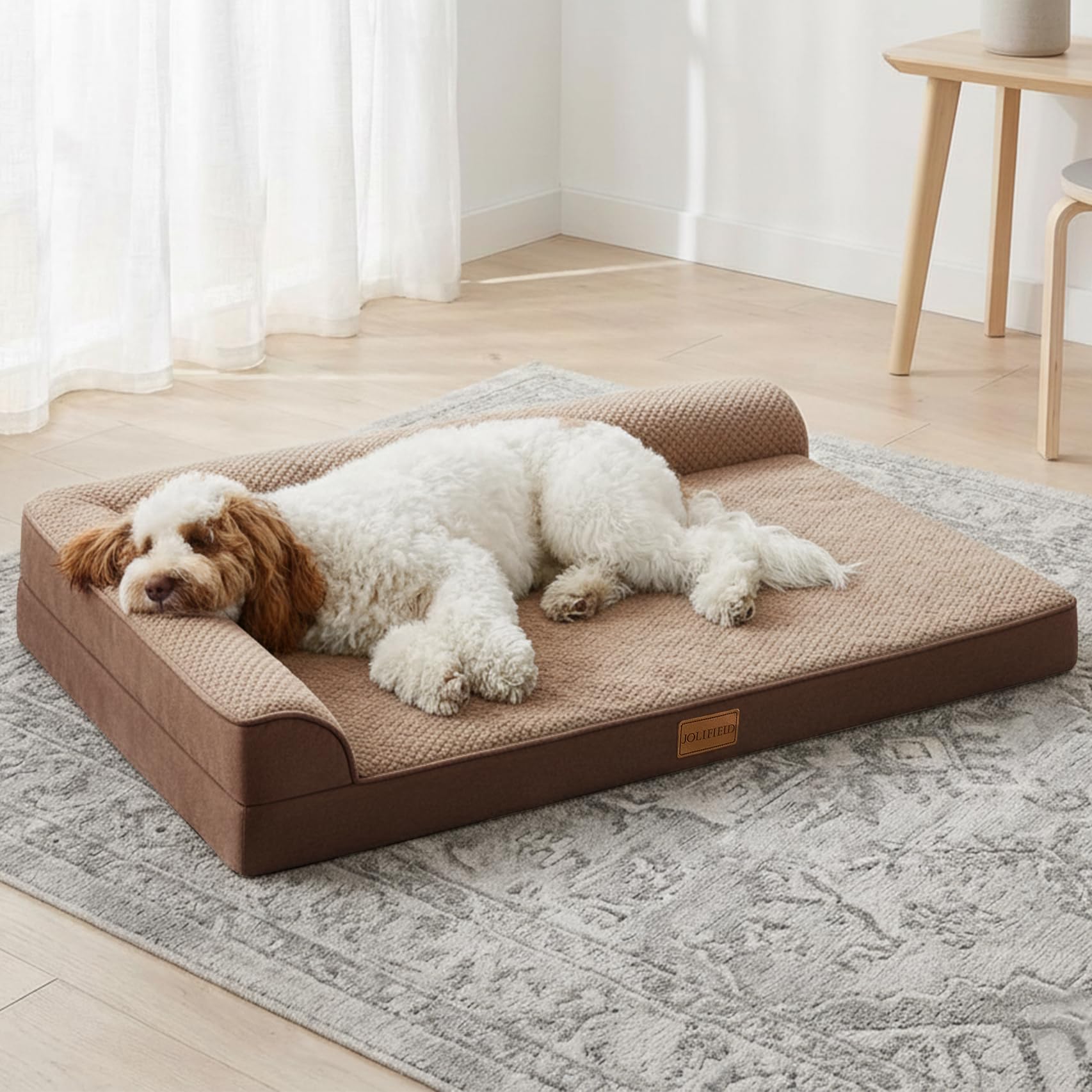 - Jolifield Orthopedic Jacquard Dog Bed Large Sized Dog 36''X24'', Waterproof L Shaped Large Egg Crate Foam Pet Crate Beds with Washable Removable Cover, Non-Slip Soft Comfortable Pet Couch Sleep Mat, Black