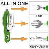 2Pcs Camping Flatware Foldable Utensils Detachable Portable and Versatile Stainless Steel Knife Fork Spoon and Bottle Opener Compact Outdoors Cutlery Pocket Knife Style - 2/pk (Black & Green)