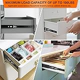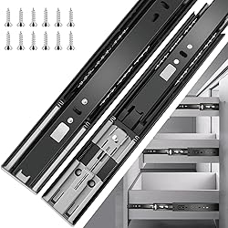 [6 pairs Soft Close Drawer Slides]:You will get 6 pairs(12pcs) soft self close drawer slides ,10 inch.And each drawer slides match with 12pcs screws.JI2OOYI self close drawer slides designed with ultra smooth soft-close function. Continuous bearings ensure smooth and quiet performance that offer less noise at closing and opening. [Guide for Choosing Size of Drawer Slides]:Side installation.The length of slides can't be longer than the cabinet case depth. Face frame cabinets will require a rear mounting bracket, whereas for faceless cabinets the slides are mounted directly on the side. To determine which size of slides are good for your drawer, please measure the length of the drawer without the frame board. And if the length is not even, please choose 1 inch shorter. [High-Grade Material]:All of the drawer slides which made by JI2OOYI are made from high-grade cold rolled steel that is electrom zinc plated.Rust resistant for your lifetime use.Side mounted Steel ball-bearing action.100 LB capacity. [3-Fold full extension & Detachable]:The 3-fold full extension allows for the entire drawer to be accessed.Three-stage stretching can pull out the drawer completely.Make full use of your drawer space.There is a plastic buckle on the back of the slide rail, by pressing it,the 3rdtrack(the narrowest section) can be separated.Easy to take down and clean.At the same time,double anti-drop function would prevent drawer separate from cabinets. [Application range]: JI2OOYI drawer slides are available in 10inch, 12inch,14inch,16inch,18inch,20inch,22inch.Various choices for drawers in your kitchen,bathroom,bedroom,office with different depth.It also can apply to ,keyboard drawers,wardrobe drawers,wooden or steel drawer,cabinet drawers,toolbox drawers that with demand for big load-bearing capacity.
