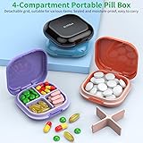 【 Portable size for traveling:】Size of this portable pill box is 8x8x2.4 cm/3.15x3.15x0.95 inches, can be easily put in your purse, suitcase, backpack, handbag, or your coat pocket, without taking up space, very convenient for a trip 【4 or 1 Compartment Design】: Our daily pill organizer has 4 independent compartments, which can prevent medications from mixing and keep the medications you need for the day in one place. The partition can be easily removed so you can refill your medications and clean your small pill box. And the partition also can be removed, turning the 4 compartments into a large storage box. 【High Quality Material】: The pill container for pocket is made of high-quality ABS material, no chemical smell, durable, anti-fall, moisture proof and not easy to break, it can be used for a long time. 【MOISTURE PROOF & PROTECT PILLS 】: With the thickened silicone ring surrounded, can keeps your travel pill case closed tightly and prevent your pill from moisture and dust, so you can take fresh pills every day and say goodbye to damp pills 【Versatile】 - This travel pill box can store pills and other small items, they can also hold buttons, jewelry, earplugs.suitable for hunting, fishing, camping, adventure, outdoor lifesaving and other outdoor activities or family,and even coat pocket.If you encounter any quality problems with our , please contact us