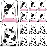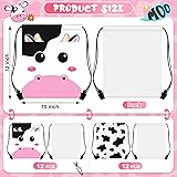 Censen 24 Pcs Cow Print Drawstring Bags Set Bulk 12 x 10 Inch Candy Treat Goody Waterproof Beach Bags for Girls Boys Kids Western Cow Themed Party Birthday Party Favor Supplies