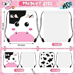 What you will receive: with one single purchase, you get a pack of 24 cow drawstring bags for kids, size of about 12 x 10 inches; This bulk package not only gives you enough quantity for replacements but is also ideal for events, parties, or gifts; You can share the joy of a smart, practical gift with your friends and family throughout the year Waterproof Material: our kids drawstring bag is made from quality polyester fiber, ensuring its longevity and ensuring its stand against daily wear and tear; This material is waterproof, and the polyester fiber allows for easy cleaning and quick drying; Give your belongings the quality protection they deserve with this backpack Exquisite Design: cow print drawstring bags is printed with classic black and white cow print and cute cow head, looks vivid and cute, popular in farm theme party, easy to catch people's attention and be a hit in your cow theme party; Wherever you go, this pack is sure to put a smile on your face Suitable Size: the cow print drawstring bag, with a substantial size of about 12 x 10 inches or 30 x 25 cm, provides plenty of space without being bulky; It is designed to accommodate your items like books, gym gear, electronics or travel necessities, making it an ideal choice for various activities and daily needs Tips: our drawstring backpack is packed in boxes; If you receive the old packaging, you can remove the bag creases by ironing or placing heavy objects, thank you for your understanding; Sports drawstring bag staining problem has been improved, please feel free to buy