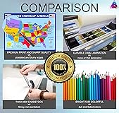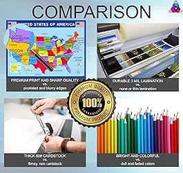 ⭐PERFECT SET- This set includes all the popular posters every child and adult will ever need related to the world and solar system: USA map, world map, solar system, and moon phases. ⭐BEST VALUE- Four high quality posters at an affordable price means the best value you will find anywhere. ⭐COLORFUL- This set of four posters stands out among the rest because of their 3D appearance. Unlike other 2D posters that look flat, these posters add slight dimension and a POP of color. ⭐APPROPRIATE FOR ALL AGES- Designed with toddlers, preschoolers, and grade schoolers in mind, these posters are also suitable for teens and adults who want a simple, no fuss map. ⭐LAMINATED- Double sided flush lamination to provide extra durability. Flush lamination are cut along the very edges of each poster (exactly same size as poster). Dry erasable and water resistant. ⭐MADE IN USA- Printed and hand-packed in USA to ensure quality prints reach your hands. ⭐IDEAL SIZE- 14x19.5 inches, 80# Cover stock glossy art paper, front and back lamination makes a perfect fit for classrooms, bulletin board, homeschool room, learning centers, or kids’ bedrooms. ⭐IDEAL GIFT- This set will be the perfect present for preschool, kindergarten, elementary school teachers and students; homeschooling parents and children; boys’ or girls’ bedroom decor, holiday gifts, playroom decorations, nursery wall art, adventurous travelers, and many more!