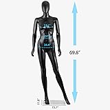 Sturdy and Durable: Manufactured by meticulous treatment on details (PE plastic + Metal base,Height: 70",Waist: 24" ,Hip: 34.5",Chest: 33"),unbreakable and durable,comes with metal base and a stand to make sure it stands stable and securely,every process done elaborately Charming Design: Vivid figure, good for conveying taste and charm of your clothes,better effect with fashion clothes,will definitely draw people's eyes to your display.Its genuine pose and a makeup face perfectly mimics the attractive look of modern real woman Turn 360 Degree: Head, arms and legs are adjustable, there is a plastic connector inner side of the neck, which can fix the head,so head can turn 360, you can switch to any posture as you like; The mannequin is only 15 pounds, and you can easily move the dress form side to side Easy to Dress Up: Every part of the mannequin is detachable and easy to dress as styles change,calf rod keeps the floor standing form stable,you can put different wigs to match different styles of clothes like shirts, jacket, blouse & accessories 70" Female Mannequin: The perfect height is ideal for display clothes of different styles. It is fashionable and stylish with this height. It is perfect to fit all sophisticated clothing stores and studios; Easily clean up the mannequin and make it as a brand new one