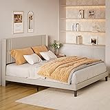 Comfortable Headboard Design: Featuring a wing-shaped headboard, this king bed frame keeps your mattress and pillows securely in place. The soft padding and fabric make it extra comfortable, giving you a good spot to unwind or read in bed Sturdy & Stable Build: Made with a strong steel frame and FSC-Certified wood,this platform bed king is designed for lasting support. The four cylindrical legs and central support add extra stability to keep your bed steady and no creak Quiet, Slip-Free Sleep: With anti-slip rubber pads and soundproof Velcro, this king bed frame prevents movement and reduces noise. Enjoy a peaceful, quiet night without worrying about floor scratches or slipping Ample Under-Bed Storage: Offering 7.5 inches of clearance, the space underneath is ideal for storing shoes, boxes, or other essentials. It’s also accessible for a robot vacuum, making it easy to keep the space clean Just the Right Fit: This king bed frame fits mattresses from 8 to 12 inches thick, so no box spring is needed. It’s a versatile choice for any bedroom, adding style and function