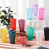 Vibrant and Exciting Colors: you will receive 12 reusable coffee cups with lids, available in 12 different colors, ranging from serene white to energizing orange; Whether you are in a mood for flamboyant red, placid light blue, bold black, or burgundy, we've got it covered; This technicolor diversity adds joy to your regular coffee sipping, making it an upbeat experience every time Ideal Size for Comfort: with a dimension of about 6.3 x 3.62 x 2.28 inches and a capacity of about 16 oz, our reusable cups with lids are designed for maximum comfort; The cylindrical shape makes it easy to grip and hold; Whether it's a quick coffee break at work or a leisurely evening in the park, our cups fit comfortably in your hands, enhancing your drinking experience Sustainable Choice with Reusability: our travel coffee cups are crafted from PP plastic, synonymous with strength and longevity,can be cleaned by a dishwasher; Not only are they safe, reducing waste, but they are also designed to meet your daily needs, promising long lasting usability Designed for Convenience: nothing is more frustrating than coffee spilling out from loose lids; Fear not, our 16 oz coffee cups with lids come with a robust, leakproof design that ensures neat, convenient drinking; Enjoy your favorite hot or cold beverage, without worrying about the accidental spills.Please note: When serving hot beverages in cups, do not fill them too full (do not exceed 85% of the cup's capacity), and do not make them too hot to prevent scalding! Ideal Companion for Diverse Occasions: whether it's a barbecue party, a grand wedding, an office meeting, or a quiet time in your kitchen, our 16 oz hot cups with lids are your nice companions; Besides, their vibrant colors make your gathering more lively and enjoyable