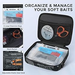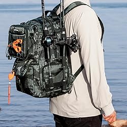 Interchangeable Storage System: The KastKing BaitSpace 50L Backpack comes with a removable soft bait binder bag that includes six clear-view sleeves (9.5” x 7.5”) for quick identification of your baits. This versatile system allows you to swap the binder bag for an optional lunch cooler or line spooling bag (both sold separately), making it adaptable to your fishing needs and lifestyle. Customizable Compartments: Stay organized with a main compartment that easily converts from one large space to two separate compartments. The lower compartment is designed to hold up to four 3600-size tackle boxes (INCLUDED) with a zippered panel for quick access, giving you ultimate flexibility to organize tackle and gear for different fishing trips. Versatile Gear Storage: Keep all your essential fishing gear within reach with dedicated storage for two rod/reel combos, pliers, line scissors, and a fillet knife. Additional features include a fleece-lined pocket for sunglasses, a large zippered beverage pocket, and smaller side pockets to store tools, bait, or personal items securely. Durable and Water-Resistant: Built for rugged fishing conditions, this backpack is made from heavy-duty rip-stop nylon and water-resistant high-density oxford fabric. The hydrophobic coating offers added protection, keeping your gear dry and safe from splashes, rain, and other outdoor elements. Comfortable and Functional Design: Designed for long fishing trips, this backpack features a breathable padded back pad, ergonomic shoulder straps, and an adjustable chest strap for all-day comfort. Large loop zipper pulls make it easy to open all pockets and access your fishing gear quickly, while multiple D-rings provide convenient attachment points for lanyards, tools, or other essential equipment.