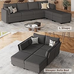 Multiple Packages: Please note that the modular couch packages may arrive separately. If you have any questions about the tracking numbers or the status of your modern convertible sofa, feel free to contact us for help Versatile Design: Arrange this modular sectional sofa as an L-shaped, U-shaped sofa, or a sofa bed. This adaptable couch fits your needs, serving as a stylish living room centerpiece or a cozy lounging area. You can also expand it with additional modules Soft and Comfy: This modular sleeper sofa is covered in breathable, high-quality fabric. Its high-density foam cushions resist deformation, while the optimal seat width and depth ensure relaxation for most body types, making it perfect for any living room Built to Last: Featuring a solid wood frame and U-shaped connectors, this sectional sofa couches for living room offers strong support with each seat holding up to 300 lbs. The expert craftsmanship ensures durability and a noise-free, stable experience Storage Space: Each seat of the home sofa living room features hidden storage compartments, perfect for blankets, pillows, and toys. Dimensions: 25.59”L x 25.59”W x 6.8”D. This sectional with storage helps keep your living area organized & clutter-free