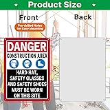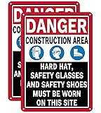 2 Pack Danger Construction Area Hard Hat Safety Glasses and Safety Shoes Must Be Worn On This Site Signs 14” x 10” Rust-Free Aluminum Easy to Install