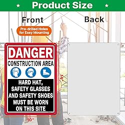 - Danger Construction Area, PPE Must Be Worn Signs is made of Rust-Free Aluminum material. This Construction Signs informs people that there may be danger in the construction area and that PPE must be worn. 14 x 10 Inches Ideal size, Bright colors and big enough to read from a distance. Construction Zone Signs is made of Sturdy and Durable Rust-Free Aluminum material, UV Protect, Reusable, Waterproof, No fading. Signs for Workplace are professionally designed, not only with an eye-catching appearance but also with reflective materials that will catch someone's eye in the dark. Easy to let people see the important message. The package includes: Two Pack Danger Construction Area, PPE Must Be Worn Signs.