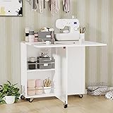 3imothrix Folding Dining Table, Versatile Foldable Kitchen Dinner Table with Drawer 2 Storage Racks and 6 Wheels, Space Saving Dining Table Collapsible Expandable Rectangle for Small Spaces