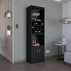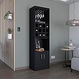 MODERN & STYLISH BAR CABINET: This 71-inch tall, narrow cabinet adds a touch of elegance to any space while providing ample storage for all your bar essentials. AMPLE STORAGE SPACE: Features a double-door cabinet, 12-bottle wine rack, 12 stemware slots, spacious shelves, and a pull-out tray for easy organization of glasses, liquor, and barware. VERSATILE & PRACTICAL DESIGN: Perfect as a alcohol cabinet, kitchen pantry, china cabinet, coffee bar, or storage cabinet. Ideal for homes, apartments, and small spaces. DURABLE CONSTRUCTION: Crafted from high-quality engineered wood for long-lasting durability and stability. Includes wall anchor for added safety. EASY ASSEMBLY: Simple and straightforward instructions make assembly a breeze.