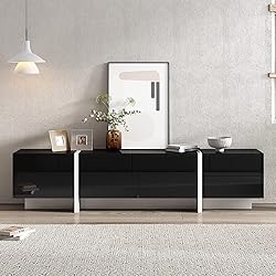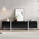 Kaimei Modern White & Black Rectangle TV Stand for TVs Up to 80'' with High Gloss UV Surface, Storage Cabinets and Drawers, Living Room Media Console