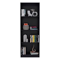 - Enhance your home decor and banish clutter with the Vinton Bookcase. This stylish and functional bookcase features four spacious shelves, providing ample room for your books, decorative items, collectibles, or plants. Its slim profile optimizes storage without encroaching on valuable floor space, making it ideal for living rooms, bedrooms, offices, and more. The Vinton Bookcase is crafted from durable pine wood and particle board, ensuring long-lasting quality. Assembly is a breeze thanks to the included detailed instructions. Elevate your home organization and styling with the versatile Vinton Bookcase.