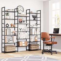 【Triple Column Multifunctional Bookshelf】: Featuring 17 open shelves, this bookshelf provides ample space to store books, photo albums, alarm clocks, potted plants, and various decorations. It serves as both a functional storage unit and a stylish display for your beloved collections. The minimalist and elegant design complements a variety of home decor styles, making it a versatile addition to any study room, bedroom, living room, dining room, or office. Dimensions: 63.6" L x 11.8" W x 74.4" H 【High Quality Bookshelves】: Constructed from premium metal and selected particle board, our contemporary metal bookcase offers high stability and long service life. The top-notch anti-rust coating gives the shelf a sophisticated appearance. Its waterproof and scratch-proof boards can be easily cleaned with a wet rag. Featuring an excellent metal frame and thick solid panels, each shelf can hold up to 70 lbs 【Adjustable Shelves】: Unlike fixed shelves that limit the height of display items, our bookshelf features an adjustable design. You can easily modify the position of each shelf to accommodate items of various sizes, allowing you to customize a bookshelf that perfectly suits your needs 【Adjustable Feet】: This bookshelf features adjustable feet for leveling on uneven floors, ensuring stability and preventing floor scratches when moving the shelf. The "X" support bar at the back provides additional stability, protecting your displayed items. No shaking No wobbling 【Super Easy To Install】: This wide storage bookshelf requires only 8 steps to assemble. Detailed instructions and all necessary tools are included, making the installation process quick and straightforward 【Smiley Customer Service】: Welcome to contact us! Your satisfaction is our top priority. If you encounter any issues regarding product quality or have any problems during your purchase, we are here to help. We guarantee easy and fast responses, as well as replacements when needed