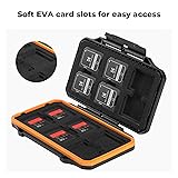 Compact Size, Large Capacity: The dimension is 127 x 80 x 19.4 mm/ 5 x 3.1 x 0.7 inch with 24 slots For 12 SD cards and 12 Cfexpress Type-A memory Full Protection: The shell is made of premium ABS material, preventing the valued memory card from scratch and impact. Silicone sealing rings effectively prevent water, dust, and debris from entering. Precision Fit: Precision cut soft EVA inner lining, protect the card carefully, easy access to avoid damage the memory card. Snap-On Design: The locking system keeps the cards securely in the card protector. Easy Carry: Compact and small size design, comes with a lanyard that can be attached to the backpack to prevent loss. It's a good partner for Photographers, Drone pilots, YouTubers, Vloggers, Content Creators, etc.
