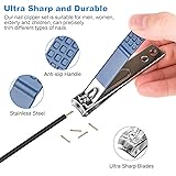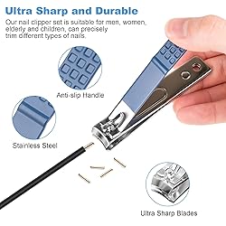 - Our 4 pcs nail clipper set, with 3 pcs ultra sharp nail clippers, 1 pcs nail file. Can help you clipping and polish all types of nails easily, keep your nails neat and tidy. Our team focus on premium nail clippers for men, nail clippers for women. Use this set of toenail clippers fingernail clipper, can perfectly solves your nail clipping needs. Great finger nail clippers adult. Outstanding Material:Our nail clippers set nail cutter are made of stainless steel. Superior Function:Professional nail clippers with ultra sharp blades are made of high precision stainless steel, hand polished cutting edge to make them sharper. Sharp blade and perfectly aligned curved blades, can cut thick nails smoothly and easily. 3 Different Cutting Edges, 1 PCS Nail File:1 pcs large toe nail clippers, Has curved blades that follow your toenail shape, easy for thick nails. fingernail clippers for men women1 pcs small fingernail clippers, Can be better grasped. Meet the natural curve of nails, easier to clipping nails. 1 pcs angled nail clipper, Use it to clipping the ingrown nails and dead skin. 1 pcs nail file, Can perfectly shape your nails and polish the edges of your nails. Nail cutter for men women, ergonomic, extra-long handle, anti-slip, make you feel comfortable to use. No more hesitation! Try it now! Buy At Ease:If there are any problems about using our nail clippers set, please contact us and we would be very happy to solve your problemsJust add to your cart now! Package Includes:Large toe nail clipper X 1Small finger nail clippers X 1Oblique nail clippers X 1Stainless steel nail file X 1