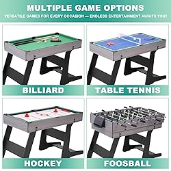 54" 4-in-1 Multi Game Table, Foldable Combo Game Table Set with Ping Pong, Hockey, Pool Billiards and Foosball for Adults, Home, Game Room, Friends & Family