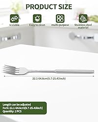 - Packing List2 x telescopic forkMaterial: stainless steel Color: Silver Size: Extendable spoon: approximately 8.7 inches , extendable to 25.43 inchesMulti-functional useWhether it's for everyday dining, outdoor picnics, camping trips, or special food tastings, our long-handled fork sets meet your diverse needs. They are not only dining tools, but can also be used in a variety of culinary occasions to enhance your dining experienceCreative GiftsThis set of fork is not only practical, but can also be used as an innovative gift for friends and family. The unique retractable design and stylish look make it the perfect gift for those who love practical and creative itemsAttentionSize is measured manually, slight error may exist. Colors may vary slightly due to different screen displays