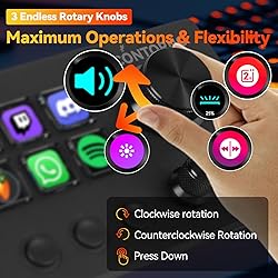 【 MOST AFFORDABLE PROGRAMMABLE STREAM CONTROLLER 】 At under 100 bucks, enjoy a professional-grade streaming controller equipped with rotary knobs, LCD keys, and 3 tactile buttons. Simplistic design with powerful performance 【 3 ENDLESS ROTARY KNOBS FOR MAXIMUM FLEXIBILITY 】 Features one large and two small knobs with infinite left and right rotation and clickable functionality. Perfect for volume control, brightness adjustment, playback control, or hotkey mapping, offering endless possibilities. 【 6 CUSTOMIZABLE LCD KEYS 】 Each button comes with a high-resolution display. Fully programmable for functions, icons, and commands, just like the top-tier stream decks. 【 3 TACTILE BUTTONS FOR SIMPLE OPERATIONS 】 Non-visual buttons with a satisfying click sound, ensuring clear feedback with every press for quick and reliable operations. 【 UNLIMITED SCENE CREATION 】 Configure countless scenes where every button and knob can be redefined. Simplify your streaming workflow with personalized settings for every scenario. 【 COMPATIBLE WITH macOS AND WINDOWS 】 Comes with a USB-A to USB-C cable and an additional USB-C to USB-A adapter for seamless integration with both Mac and Windows systems. 【 DETACHABLE 40-DEGREE STAND FOR ERGONOMIC COMFORT 】 Designed for extended use without fatigue, the optimal 40-degree stand ensures a comfortable viewing and interaction angle. 【 EFFICIENCY TOOL FOR CONTENT CREATORS AND STREAMERS 】 Perfect for photo, video, and audio editing, as well as live streaming. Assign complex operations and workflows to visual buttons, boosting productivity and reducing complexity. 【 EASY TO LEARN, WITH GUIDED SUPPORT 】 Access comprehensive instructional resources through the software. Note: patience and willingness to learn are essential. If you prefer plug-and-play simplicity and dislike setup processes, this product may not be suitable. 【 STREAM DOCK N3E BY HALCONTORNO 】 Please note that Stream Dock N3E is a HALCONTORNO product, not an Elgato device. If you are exclusively looking for Elgato Stream Deck, kindly consider other options before ordering.
