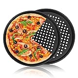 - Perforation DesignBetter extract moisture from the bottom of the pizza, making the bottom of the pizza more crispyCrimping DesignSmooth edges and corners, fine workmanship, stable structure, one-time forming, beautiful and not easy to scratch your handsNon-stick DesignDurable non-stick construction spreads heat evenly and prevents warping, making your pizza cooking perfect without hot spots Material: sturdy carbon steelSize:12.3" / 31cmColor:blackPackage included:2 x baking pizza pans Tips1.Do not bake with empty pan2.Spray the pan with edible oil before baking will be helpful when removing the food3.Hand wash would be recommended.Dry them before storage in order to entend the life time4.Use soft spong, NOT hard cleaning tools to avoid scratching the pans.5.Check the size if that fits your need