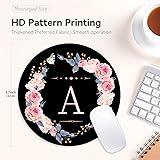 Letter A Black and Pink Flowers Round Mouse Pad,Funny Small Mouse Pad with Non-Slip Rubber Base,Mouse Mat,Home Office Decor Desk Accessories,8.7inch Round Mouse Pad