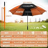 【62-Inch Large Golf Umbrella】This 62 inch huge black and orange umbrella is 136 centimeters wide, oversize umbrella much larger than a regular umbrella, large umbrella can easily provide shade and shelter for 1-3 people. Anti slip EVA breathable and soft oversized handle reduces hand fatigue, with one click automatic opening, allowing you to easily enter wind and rain. The golf umbrella is very suitable for various occasions such as golf courses, business activities, outdoor travel, camping, picnics, etc 【Windproof Double Canopy Golf Umbrella】The double canopy design incorporates a safety buffer structure to prevent the big umbrella from rotating or turning outward due to air flow. The double canopy structure increases the overall stability of the windproof golf umbrella, allowing it to remain upright in strong winds and ensuring that you can walk or engage in other outdoor activities in the rain with peace of mind 【Waterproof And Sunscreen Fabric】Oversize umbrella made of newly upgraded high-density microfiber, it has super strong waterproof and fast drying properties, golf size umbrella protect you from the invasion of heavy rain. At the same time, this fabric also has sun protection function, reflecting a large amount of ultraviolet rays and heat in hot summer, providing you with a cool and shaded place 【8 Rib Strong Umbrella】Using lightweight and sturdy fiberglass not only reduces travel burden but also enhances wind resistance. The big golf umbrella frame reduces the vibration amplitude of the umbrella surface in the wind, improves the stability of the wide umbrella in the wind, and better protects you in rainy days 【Easy And Fast Auto Open】The one click automatic opening button on the handle gives life to sports umbrella surface, quickly and accurately unfolding, with you providing cover, the simple operation makes it easy for everyone to get started, whether adults or elderly, they can quickly master its usage and enjoy the convenience of the rain