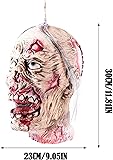 - Product Description Halloween Severed Head Prop, Halloween Body Parts Decoration Props, Scary Halloween Decorations Cut Off Head Prop, Halloween Scary Realistic Hanging Severed Bloody Head Material: PP + emulsion Size: 34.5*9.5*9cm / 13.46"*3.71"*3.51" Colors: White, Cream Package: Halloween Severed Head Prop x 1 Having this scary ghost scary halloween severed head prop to scare your family or friends or cosplay like a female ghost in a horror movie! The combination of these elements will produce a strong sense of psychological oppression. People who see it will turn pale with fright, thinking they are in hell. The main material is latex, a large amount of latex is filled in the skull to make it look fuller. In the production process, professional technology is used for deodorization. It is light weight, non-toxic, odorless, waterproof, insulating, very natural and lifelike, and easy to clean. Horror cut off head for party bulk, Not just for a bit unusual Halloween Christmas Gift, also perfect for dragon dressing up party, pretend play. A beautiful photo prop for your holiday or birthday photo-shoot.