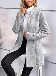 Material : Stay stylish and warm this winter with our women's wool coat Outerwear in a classic pea coat design. Soft, breathable, lightweight and comfortable material, this mid-length peacoat trench overcoat is perfect for chilly days Feature: Solid color, stand collar, slim fit, casual loose, classic notched lapel blazer for women, regular fit, herringbone, ribbed stripes pattern, notch lapel, one button closure, mid-long length, stylish and elegant, top lapel single breasted, open front striped blazer jacket peacoat, long sleeve fall overcoat Occasions: The mid-long wool blazer for women jackets are suitable for business, street, work, travel, outdoor or daily casual in autumn, winter and spring, get it for yourself or send to your wife or mother Match : This classic notched lapel long slim jacket outwear is a perfect fusion of classic style as well as modern sharp look. It's easy to pair with any outfit. Wear these trendy coats for women with your jeans, shorts, dress, or suits for a chic look in spring, fall or winter Warm notes : Please refer to the details picture on the left before you purchase. And recommend dry clean or hand wash. Hang dry. No Bleach