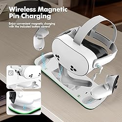 - DOBE FOMIS ELECTRONICS Charging Dock, VR Headset and Controller Accessories Compatible with Meta Oculus Quest 3/3S, Charging Station with Closable LED Indicator, Magnetic Charging, Fast Charging, 2 Rechargeable 1850mA Batteries. Minimalist, Light Pollution-Free Design, Ultra-thin design, Accessible LED Charging Indicator, Stable Charging Protection, Neat Storage Option: Create a neat and organized gaming environment with our VR charging dock station, which provides a dedicated spot for your headset and touch plus controllers, ensuring they're always accessible for gaming sessions. At the same time, it also reduces the complexity of storing your equipment after each use