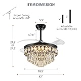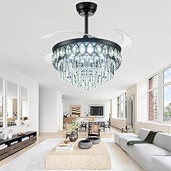 【Fandeleir Ceiling Fan with Light】This ceiling fan with lights combines the functionality of a fan with the elegance of a crystal chandelier. The fan and light can be controlled independently, and the blades automatically retract when the fan is turned off, maintaining a sleek and stylish look. Perfect for living rooms, bedrooms, and dining rooms, this chandelier fan adds both comfort and sophistication to your space. 【Dimmable LED Light】This modern ceiling fan features adjustable color temperatures—3000K (warm light), 4500K (neutral light), and 6500K (daylight). Both the color temperature and brightness can be smoothly adjusted from 10% to 100%, allowing you to create the perfect lighting atmosphere. It also includes a night light mode, ideal for sleeping. 【Reversible Motor for Year-Round Use】Designed for all seasons, this fandelier has a reversible motor. In summer, it delivers a powerful downdraft airflow of over 5000 CFM to keep you cool. In winter, it circulates warm air upward, helping to maintain a cozy environment. The ultra-quiet motor operates at less than 30 dB, ensuring a peaceful and comfortable experience. 【Remote & APP Control】Easily control all functions through the included remote or dedicated smartphone app. Adjust fan speed (6 levels), set a timer (1/2/4/8 hours), switch between color temperatures (3000K–6500K), and fine-tune brightness (10%–100%). The fan and light can be operated separately, and the memory function ensures your previous light settings are retained when turned back on. 【Easy Installation】All necessary parts are included, along with clear installation instructions, allowing you to complete assembly in just 30 minutes! This retractable ceiling fan is ideal for rooms up to 18' x 18'. The fan measures 42" in diameter when extended and 18.9" when retracted. It is also can be installed on a slope ceiling, and the angle should be less than 30 degree. 【Warranty and Customer Service】This ceiling fan with lights comes with a 1-year warranty. If any parts are damaged or missing, we offer free replacements. Our 24/7 customer service team is always available to assist with any questions or concerns Note: This fandelier is only compatible with standard wall switches and not with dimmer switches.