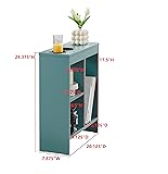 - Add sleek style and functionality to your living space with the KB Designs Teal Wood Slim Side Sofa End Table. Perfect for compact areas, this table features a striking teal wood finish that enhances any décor. Its slim design fits effortlessly beside sofas or chairs, making it ideal for smaller spaces. Two built-in cup holders keep your drinks secure and within reach, adding convenience to your relaxation. The bottom shelving offers ample storage for books, magazines, and other essentials, keeping your space organized and clutter-free. A perfect blend of elegance and practicality, this end table elevates any room with its versatile designFeaturesAssembly Required: This end table requires simple assembly, with all necessary tools and instructions included. Enjoy the satisfaction of putting together a stylish, functional piece that will enhance your space while providing both convenience and a personalized touch to your décor.Shelves & Cup Holders: This side table features 2 fixed shelves for convenient storage of books, magazines, or décor, helping keep your space organized. It also includes 2 built-in cup holders, offering a secure and easy spot to place your beverages, ensuring both style and functionality.Multi-Functional Design: This end table features built-in cup holders, offering a convenient place to securely hold your drinks while you relax. Combining practicality with style, it keeps your beverages within easy reach while also providing additional storage space to keep your essentials organized and accessible.Compact Dimensions: With overall dimensions of 8"W x 20" D x 24"H, this side table is perfectly sized to fit into smaller spaces without compromising on style or functionality. Its compact design makes it ideal for tight areas, while still offering ample storage and convenience.