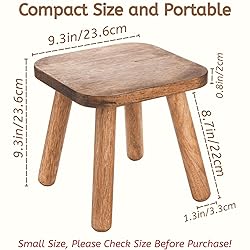 𝐖arm 𝐓ip: 𝐓his is a 𝐒𝐌𝐀𝐋𝐋 𝐖𝐎𝐎𝐃𝐄𝐍 𝐒𝐓𝐎𝐎𝐋. 𝐏lease confirm 𝐒𝐈𝐙𝐄 before purchase Compact Size: YOUEON wooden stool measures 9.3"Lx9.3"Wx9.3"H, this small but strong wooden stool is easy to move, store, or take on the go. Ideal for small spaces and apartments. Sturdy and Durable: This wood step stool is made of durable and thick rubber wood for long-lasting strength and stability, along with high-quality hardware to create a step stool with a weight capacity of up to 300 lbs. Non-slip pads on the legs of the stool provide stability Versatile: With square design, this one step stool can be used as a step stool, footstool, shoe fitting stool, reading stool, small seat, plant stand, shower stool, foot rest, placed in living room, bathroom, bedroom, kitchen, closet, etc. to provide you with temporary convenience Easy to Assemble: The step stools for adults is super easy to assemble, no tools required. Simply screw the four legs clockwise into the threaded holes on the underside of the stool board. Please see the fifth picture Elegant Walnut Finish: The rich walnut color with a wood wax oil finish gives the small step stool a sleek and modern look while protecting the wood. The curved corners not only ensure safety, but also add a touch of beauty to your room