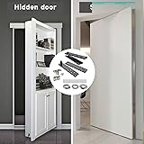 Package Included - Hidden door hinge set included 1 set of pivot hinge with 24 screws, measureing 5.8 x 1.2 inch, plate thickness 0.24 inch; 1 pcs door ball catch hardware with 4 screws. Hidden hinges for secret door, which an indispensable accessory in home life. Sturdy & Long-lasting - Heavy duty pivot door hardware is made of thickened stainless steel, rustproof and corrosion resistant, strong load-bearing capacity, pivot hinge hardware a maximum of 300 lbs, with fine workmanship and the service life is longer. High Load-Bearing 300lbs - Hidden door hinge bookcase has a unique design structure of up and down linkage, which is supported by the bottom arm and floor, reducing stress on frame. The murphy door bookcase has greater strength and stability to support up to 136kg/300lbs of weight. Easy To Install- By following the steps, the invisible hinge hardware can be easily installed on the top layer of the door and connected to the hole on surface of the door, then fix the door ball and screw. Widely Application - Use the hidden door hinge to add a touch of mystery and elegance to your space. You can create a hidden door that rotates 360 degrees. The murphy door hinge kit is ideal for secret bookcase door, cabinet door, panel door and more.