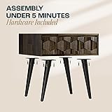 STUNNING GEOMETRIC DETAILS: Experience the flawless blend of rustic and modern design with our geometric side table; Meticulously handcrafted, our rustic side table features intricate geometric patterns to showcase the beauty of the natural wood grain QUALITY NIGHTSTAND: Expertly made from acacia solid wood with a durable finish, our mid century modern nightstand ensures long lasting quality; This accent nightstand has a sturdy structure with metal legs for longevity and stability ASSEMBLY UNDER 5 MINUTES: The solid wood nightstand brown comes 90% pre-assembled; With clear instructions and included all parts, tools in one carton box, our nightstand with drawers can be assembled in under 5 minutes MULTIFUNCTIONAL SIDE TABLE: Our fully assembled nightstand offers versatility as a multifunctional piece of furniture; Our end tables living room feature a spacious drawer for convenient storage and a large surface for displaying decor CUSTOMERS SERVICE: The solid wood nightstand with drawers is offered with a 30 day return and 1 year warranty; Our dedicated customer service team is available 24/7 to support your shopping experience