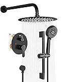 Fapully 10-Inch Shower System, Slide Bar Shower Faucets Sets Complete Round Shower Heads and 5-Spray Handheld Combo, Wall Mounted Matte Black Shower Faucet with Valve and Trim Kit