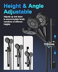 All You Need: Upgrade your shower room with this matte black shower faucet complete set! It includes a 10-inch rainfall shower head, a 16" wall mount shower arm with shower elbow, a hand shower, 59“ stainless steel shower hose, 15.7" slide bar with hand shower bracket, pressure balance valve with 2-way diverter – everything for a spa-worthy experience at home. Preventing Water Hammer: This pressure balance valve shower faucet kit has two built-in check valves to effectively eliminate water hammer noise. The pressure balance valve cartridge monitors water pressure balance, helping to protect you and your family from scalds caused by sudden changes in hot or cold water pressure. 10-Inch High Pressure Rain Shower Head: Enjoy a waterfall like shower experience, with modern excellence in performance. Offer consistent powerful shower even under low water pressure, that this will bring you an high water pressure. Hand Shower Height Adjustment: You can adjust the height and angle of the handheld shower according to your height to get the best shower experience. Easy to Control: 2-in-1 diverter switches between shower head and hand shower, which work separately. Another handle can control water temperature and water flow. This shower system is designed for use with standard 1/2" U.S. plumbing connections. We Have Always Been Here: We Have Always Been Here: Any issues of the black shower faucet set (such as don't know how to install black shower faucet set, need the replacement part and so on), please don't hesitate to contact us via amazon! We will response you within 24 hours !