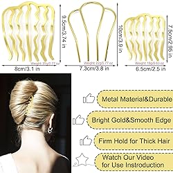 Thoughtful Combination: You will receive 6 pieces of hair side combs in different shapes. Different size will meet your different hair styling needs, and suitable for medium long hair Secure Grip & Long-Lasting: Crafted from premium metal alloy with polished finish, these pins securely hold styles without snagging hair. Reinforced side teeth provide extra stability to prevent slipping, while flexible yet sturdy construction resists bending or breakage Versatile Styling Solutions: Transition effortlessly from office days to special events – ideal for business meetings, cocktail nights, yoga sessions or romantic dinners. Elevate updos like chignons, braided crowns and waterfall twists with sophisticated flair, adding instant refinement to both modern and vintage looks Effortless Hairstyling: Engineered for hassle-free creation of polished looks, the ergonomic design works seamlessly with shoulder-length to waist-length hair. Achieve professional-looking half-ups, sleek ponytails or intricate braided updos in minutes, even for styling novices Wise Gift Option: These understated yet elegant accessories make perfect presents for graduations, Mother's Day or bridesmaid gifts. Universally flattering designs appeal to teens, career professionals and mature women alike, blending timeless aesthetics with contemporary functionality