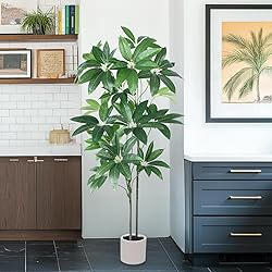 - 【Suitable for any Space】Designed to complement any decorative style, these faux plants indoor come with a black-decorative pot that can be installed into your favorite pot to add ambiance to your home or office. 【Personalized design】Our faux greenery plant decorations are designed with long term use in mind. You can easily adjust the curvature of the leaves and branch to create a custom look that suits your taste. The lush and lifelike foliage will add a touch of nature to your indoor space. 【Lifelike Decorations】Our realistic artificial plants indoor. Artificial money trees keeping evergreen in all seasons, not affected by weather and environment that cause wilting, fake tree create a natural and fresh atmosphere, Perfect for home decor living room. 【Safe and Durable】Our floor plant boasts premium quality. Made with flame-retardant materials constructed from long lasting, safe these faux trees indoor are perfect for households with children or pets. Enjoy the beauty without worrying about maintenance. 【Easy-to-clean】 Simply wipe down the leaves occasionally to keep them looking fresh and vibrant. Perfect for those who want to enjoy the beauty of nature without the hassle of watering or pruning.