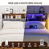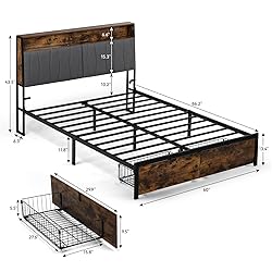 - COMHOMA Queen Size Bed Frame, Platform Bed Frame with 2 Storage Drawers, Power Outlets, 2-Tier Storage Headboard and LED, Metal Support, No Box Spring Needed
