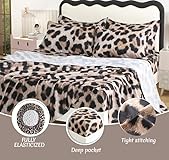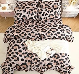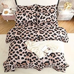 1.【7 piece bedding set】:Full Size 7 PCS Cheetah bedding set Includes 1 Comforter(88" x88"),1 Fitted Sheet(60"x80"+ 14"),1Flat Sheet (90"x 102"),2 Pillowcases (20"x30"),2 PillowShams (20"x26" + 2") 2.【Advanced Technology】:Cute leopard print bedding is made of hotel quality microfiber. 3 stitches of work per centimeter makes it durable,and the insert is used of prime Microfiber to make the bedding to be soft, cozy and comfortable 3.【Luxury Chic Design】:The cheetah bedding can decorate your bedroom, RV, dorm with the nice patterns. Add fashion to your bedroom and will definitely become your favorite. 4.【Easy Care】:You don't need to iron the cheetah bedding set, It only needs to be simply machine washed in cold water and tumbled to dry. 【HIGH ATTENTION!!!】This comforter has a printed fluffy design that looks plush, though the material itself isn’t fuzzy. The print mimics a soft, fuzzy texture for a cozy look, without actual fleece or fur.