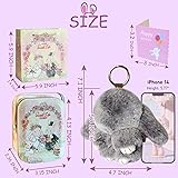 High-Quality Pure Rabbit Fur : This rabbit keychain is exquisitely made of high-quality pure rabbit fur (from humane breeding/processing). It feels soft and fluffy, Free of harmful chemical substances, absolutely safe for human health.Fully showcasing luxury, much softer,healthier and more delicate than artificial fur.Hardware keychain durable will not rust. ERSATILE FASHION ACCESORY: Ultra-soft pure fur, a durable metal ring, and vibrant color make ,Its versatile design allows it to be used as a keychain, bag charm, or charming decoration.The bunny's fuzzy texture and rounded design give it a delightful, huggable appearance that immediately catches attention. Perfect Gift: It come with beautiful boxes, gift bags, themed greeting cards that makes it an excellent option for gifting, as the packaging is both sturdy,thoughtful and visually appealing.The tin box comes in an exquisitely printed tin package. It can be used as a collector's storage box or a reusable container, combining aesthetic appeal with practicality. Multi-Functional: Suitable for Bags, Keys, or Display: Easily attachable via its metal clasp,this bunny-shaped keychain is perfect for bags,keys,wallet,luggage,and even decoration.Its lightweight design and charming appearance make it a favorite among lovers of bunny-shaped accessories, plush rabbit keychains, and rabbit keychain accessories. CONVENIENT KEYRING ATTACHMENT:The easy-to-use keyring ensures quick attachment and detachment, preventing accidental loss while adding personality to your items without adding extra weight.The bunny keychain is very suitable for friends who like rabbits or cute little animals
