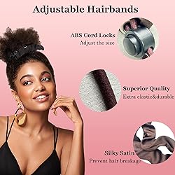 - Puff Cuff for Natural Hair, Natural Hair Headbands for Afro Puff, Easy to Use Hair Accessories for Afro Puff Loc Ponytails, Elasticity Headband Hair Tie for Thick Curly Natural Hair Ponytails, Adjustable Satin Hair Tie for Thick Hair Features: Our products bring you the ultimate hair styling solution with their high-quality materials, superior elasticity and non-harming properties, as well as convenient and easy-to-use designs. Whether you are looking for elegant styling or natural simplicity, we can fulfill your needs. Choose our products to keep your hairstyle perfect at all times Specifications: Product Name: Adjustable Hair Tie Product color: black Product Material: Imitation Silk + Nylon Product size: thick models: natural length: 10.63inch Stretch length: 14inch Packing List: 2pcs Brown Adjustable Ponytail Hair Band